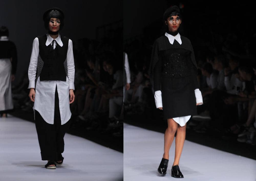 Padu padan yang mengikuti tren pun dihadirkan Patrick, seperti kemeja putih dengan korset hitam. Lalu ada pula bralet yang dipadupadankan dengan jaket serta shirtdress berpotongan off shoulder.