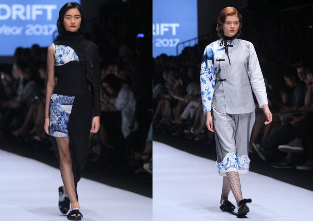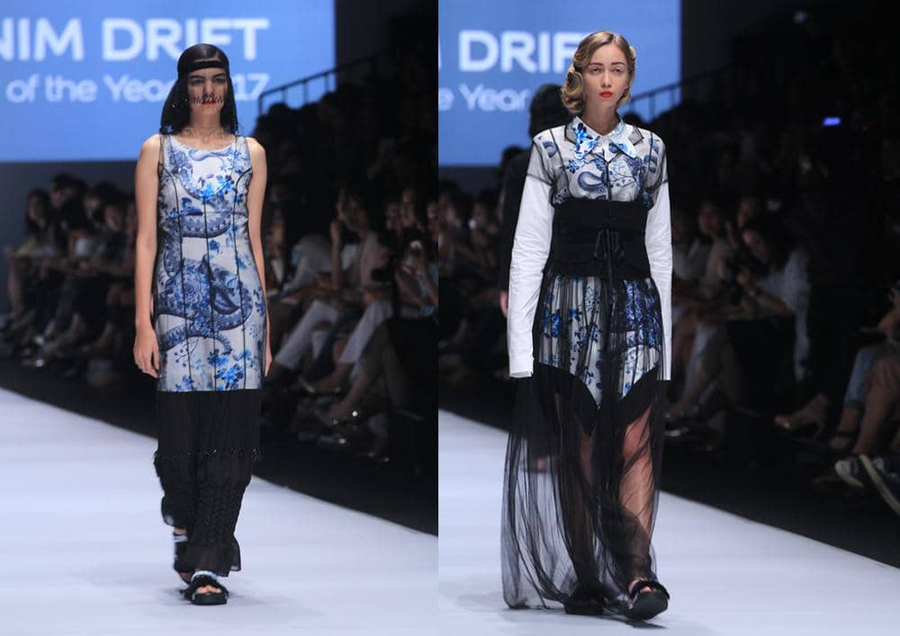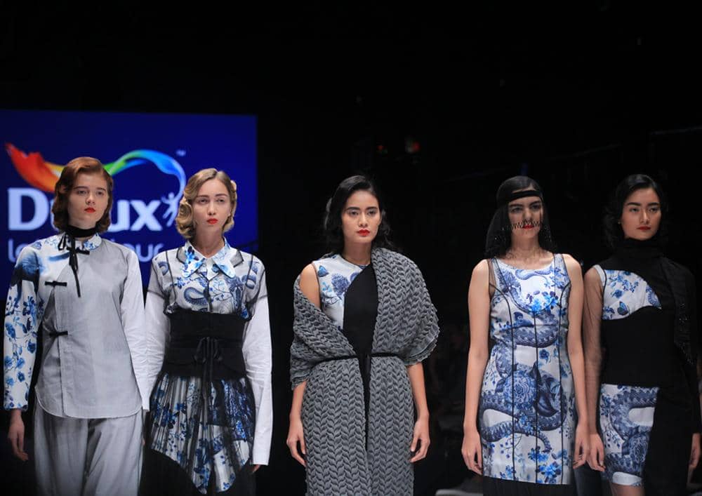 Pertunjukkan dilanjutkan dengan 5 koleksi yang mengambil tema dari Dulux Color of The Year yakni Denim Drift. Koleksi ini pun dihadirkan dengan perpaduan warna lembut seperti biru dan putih yang kemudian dikombinasikan bersama warna hitam. Patrick memilih bahan Kashmir, polyster, dan sutra serta potongan yang mengambil siluet cheongsam. Tak heran koleksi penutup pertunjukkannya ini diciptakan dengan bentuk loose skirt berbahan sheer serta matchy set yang sangat bergaya oriental.