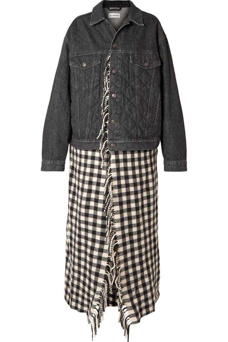 Layered denim fringed gigham wool jacket, Balenciaga, $3,585