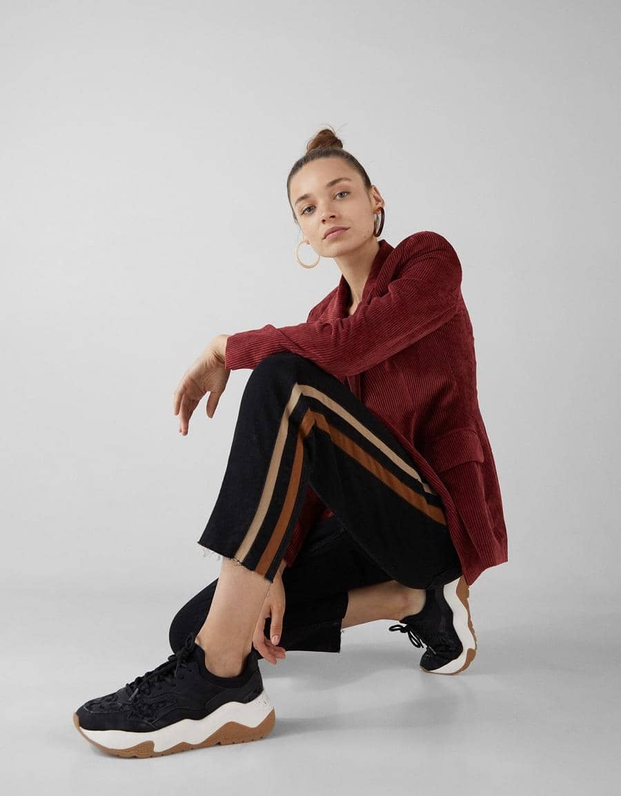 High waist mom jeans with side stripe, Bershka, IDR 699,900