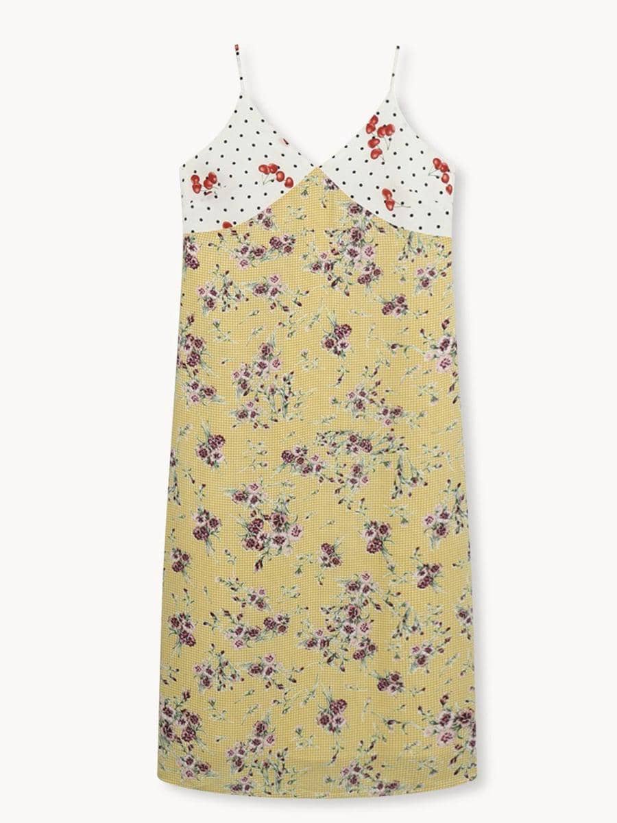 Summer dress dengan perpaduan dua motif yakni floral dan cherry makin trendi saat kamu pasangkan dengan espadrille sandal, net bag, serta straw hat.