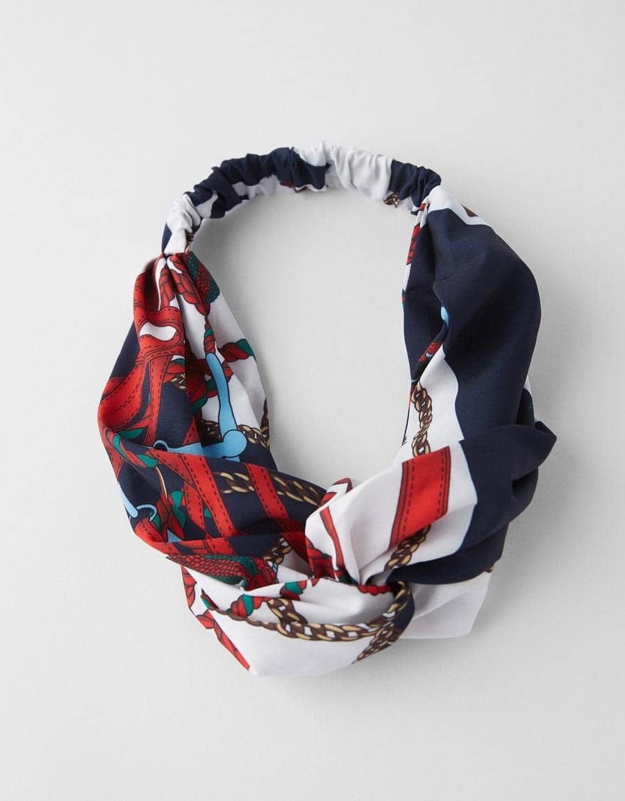 Printed turban-style headband, Bershka, IDR 129,900