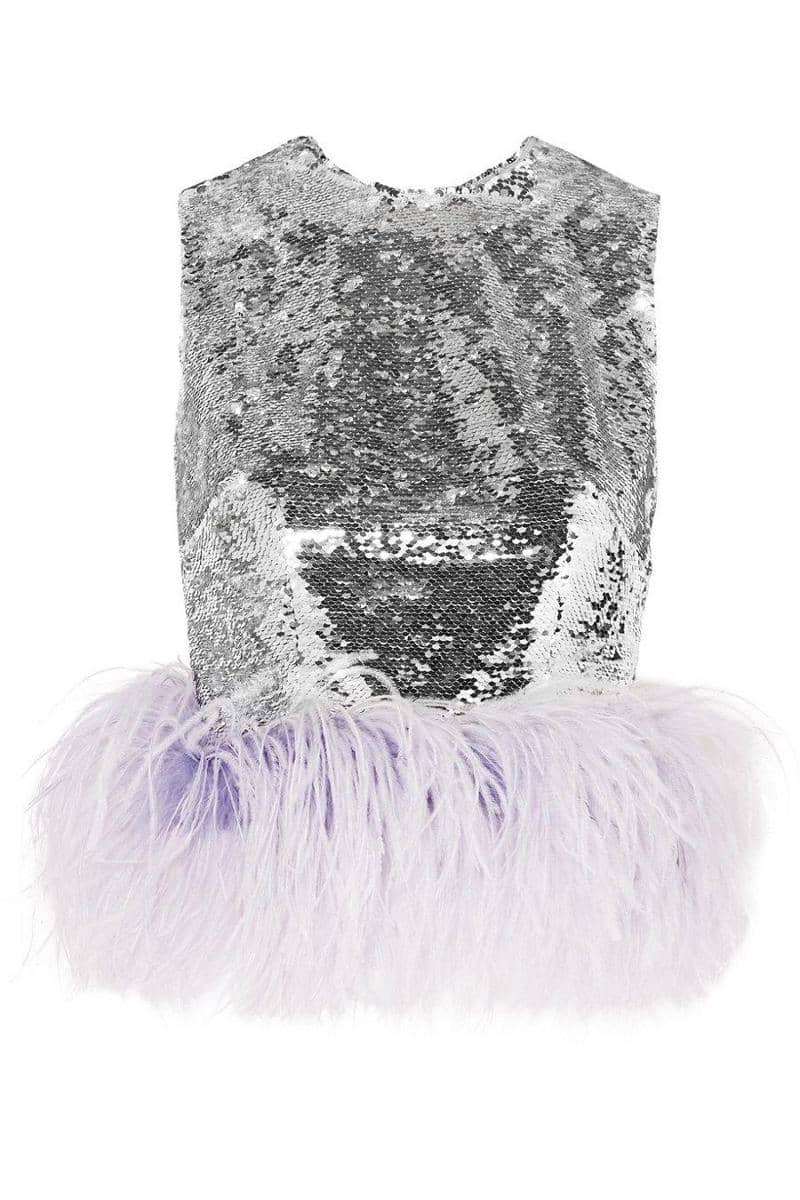 Feather-trimmed sequined tulle top, 16ARLINGTON, $525