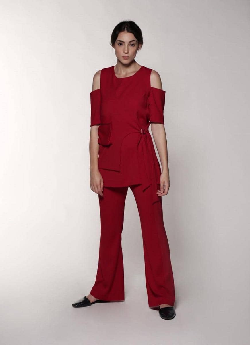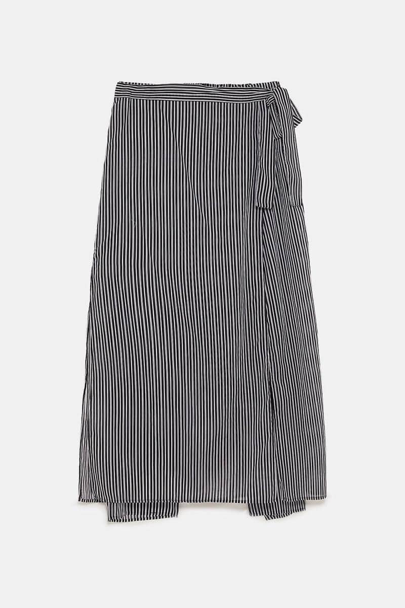 Striped pareo skirt over trousers, ZARA, IDR 699,900