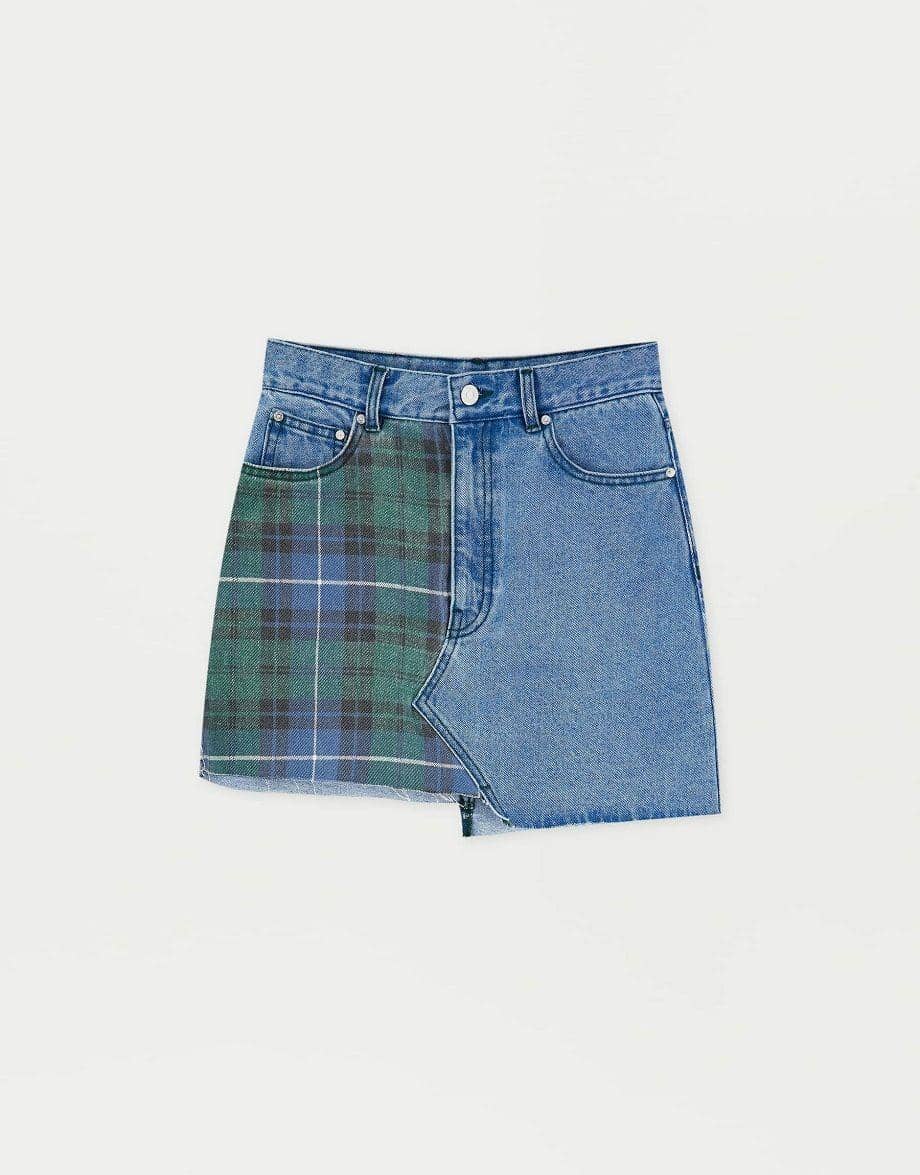 Check denim mini skirt, Pull & Bear, IDR 399,900