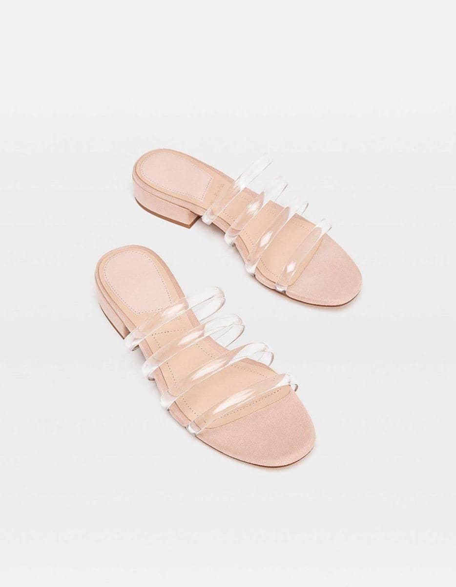 Flat sandals with vinyl tubular straps, Stradivarius, IDR 559,900