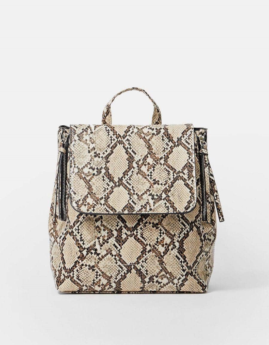 Snakeskin backpack with zips, Stradivarius, IDR 479,900