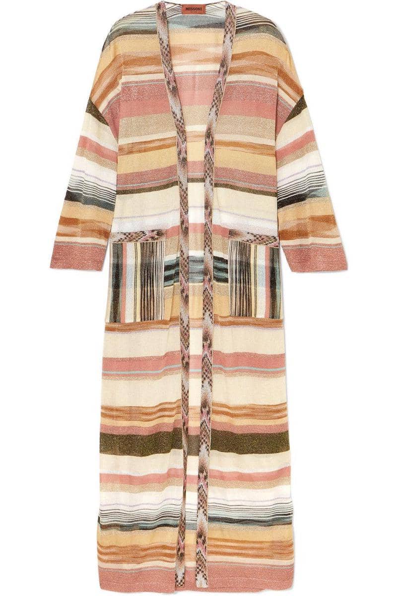 Oversized striped metallic crochet-knit cardigan, Missoni, $1,177
