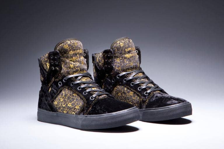 Dari brand sepatu yang terkenal akan koleksi skate-nya, Supra, menampilkan dua sepatu yang cantik dan 'ganas' - yang satu adalah slip-on beraksen merah yang warnanya diambil dari bunga mawar yang ikonik dan satu lagi seri Skytop yang hadir dengan warna hitam. Keduanya pun berbahan velvet.