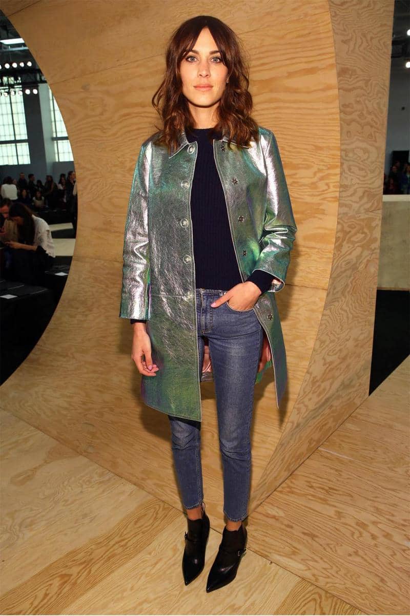 5. Tampil kekinian dengan paduan metallic bomber jacket.
