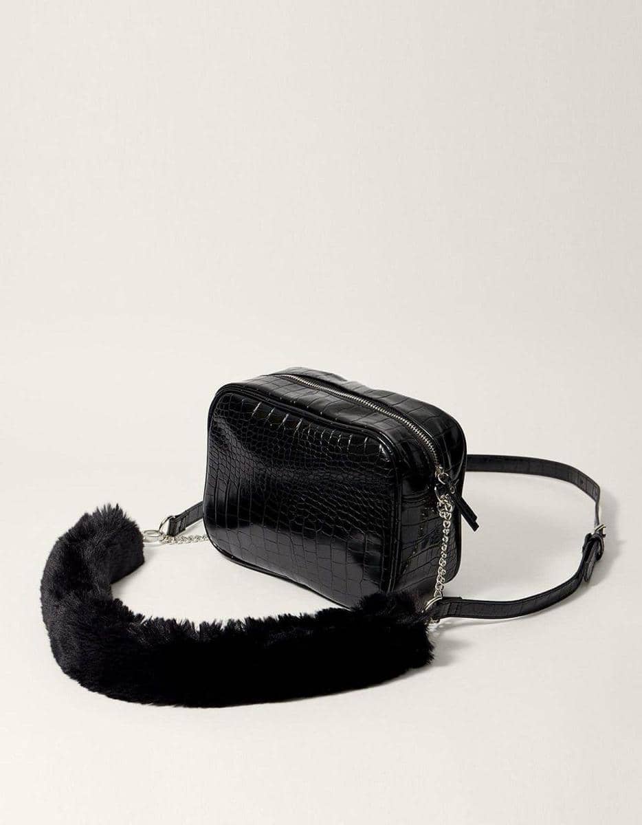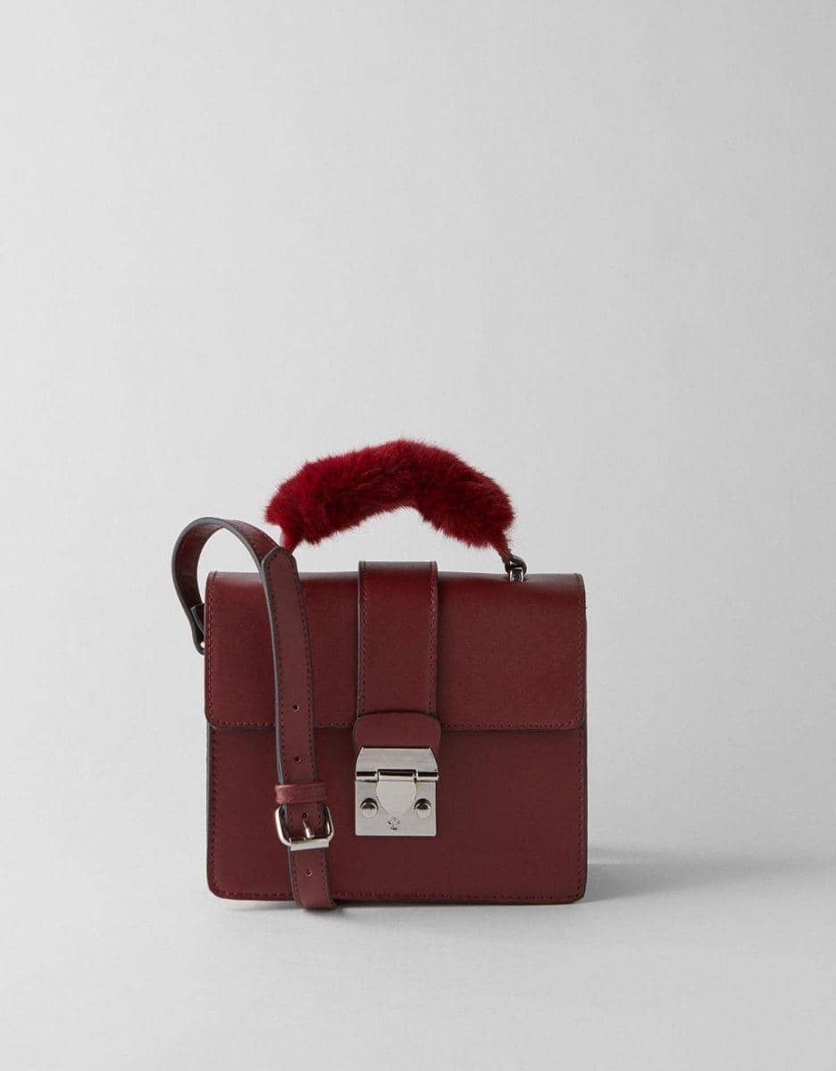 Faux leather bag with faux fur strap, Bershka, IDR 299,900