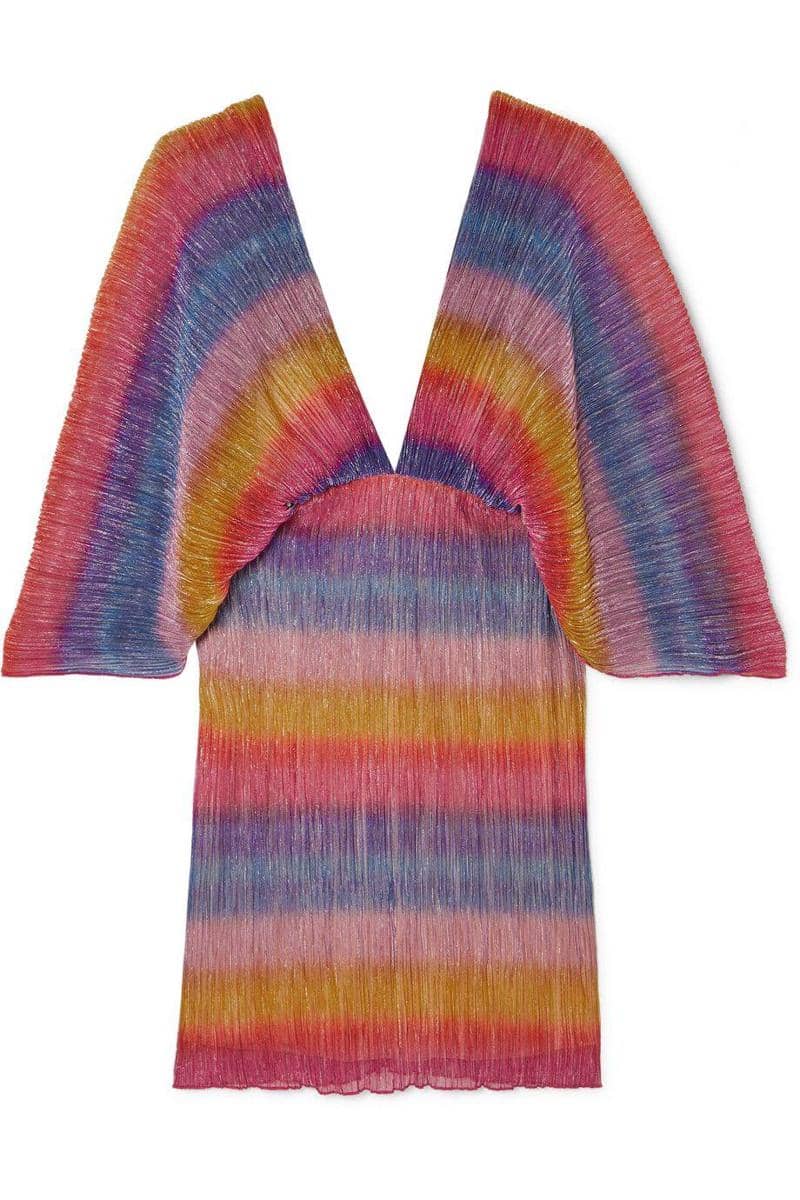 Striped metallic plissé stretch-knit mini dress, ROTATE Birger Christensen, $199