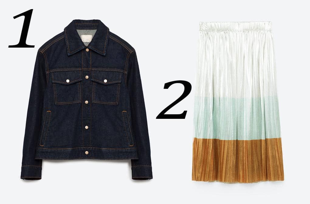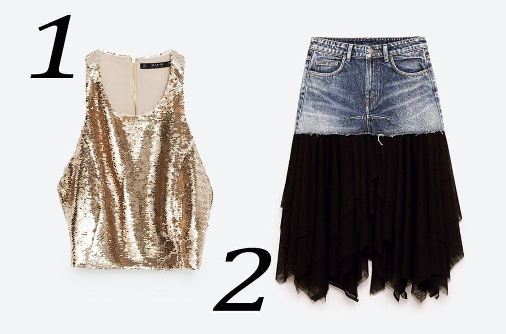 499,900 ; 2. Tulle denim skirt, ZARA, IDR 799,900
