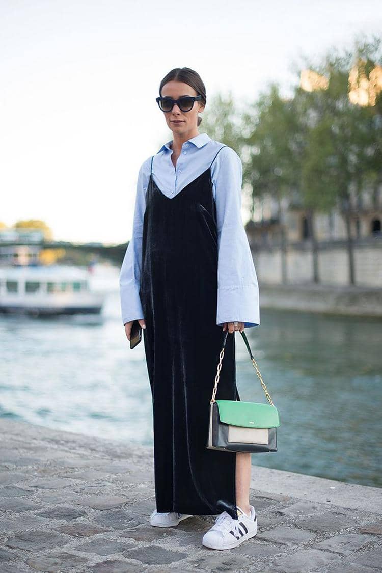 5. Untuk kamu yang ingin tampil feminin namun tetap terkesan rapi, mix n match kemeja dengan slip dress bisa dicoba. Pasti kamu akan semakin modis.