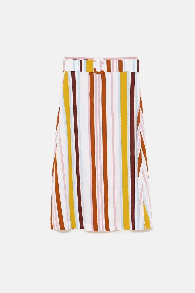 Striped midi skirt with belt, ZARA, IDR 299,900
