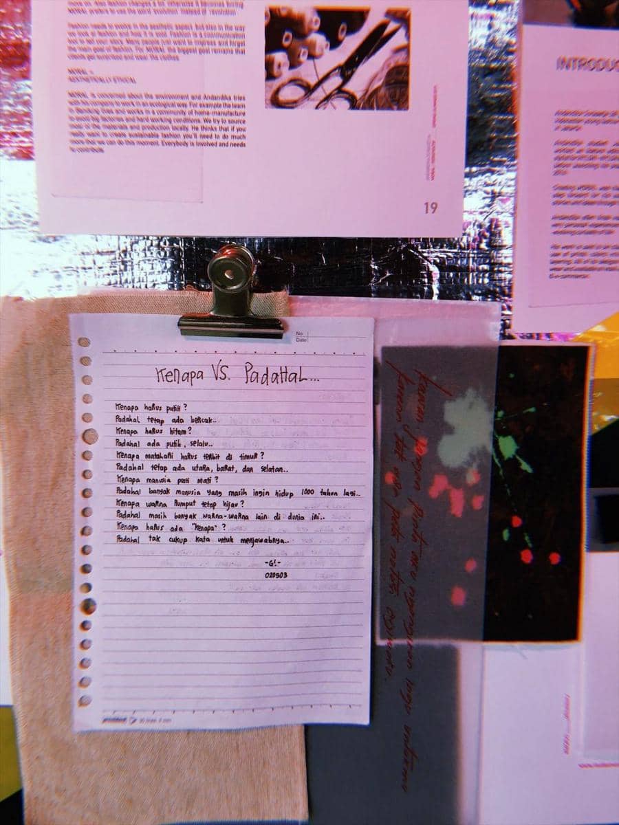 “Tentang kolaborasi bersama MADEIND sendiri sudah lama dibicarakan. Cuma ada penundaan karena aku harus fokus dengan ANFA,” jelas Dika. “Pada koleksi MADEIND x MORAL juga terjadi beberapa penyesuaian. Terutama soal attitude-nya. Ini jadi sesuatu yang baru buat kita juga.”