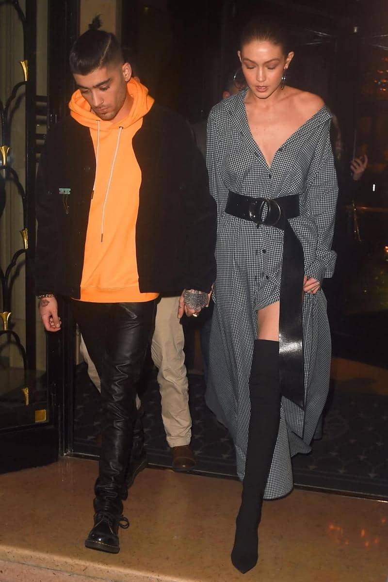 10. Date night saat Paris Fashion Week, Gigi tampak memukau dengan shirt dress , sedangkan Zayn memilih layering style yang gaya.