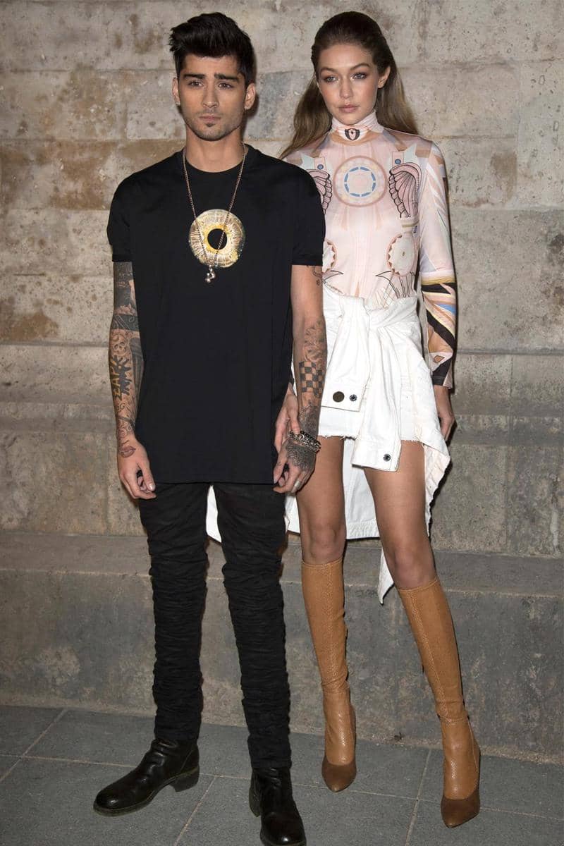 2. September 2016, Zayn dan Gigi duduk pada barisan depan Givenchy show di Paris. Zayn terlihat mengenakan statement tee dan Gigi tampak cantik dengan print dress.