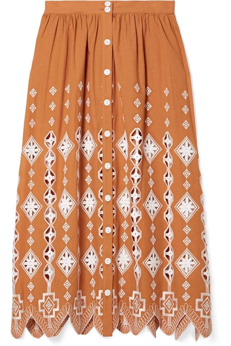 Embroidery midi skirt, Miguelina, Net-A-Porter