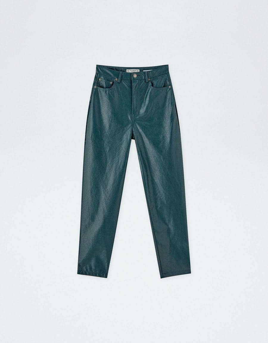 Faux leather mom fit trousers, Pull & Bear, IDR 559,900