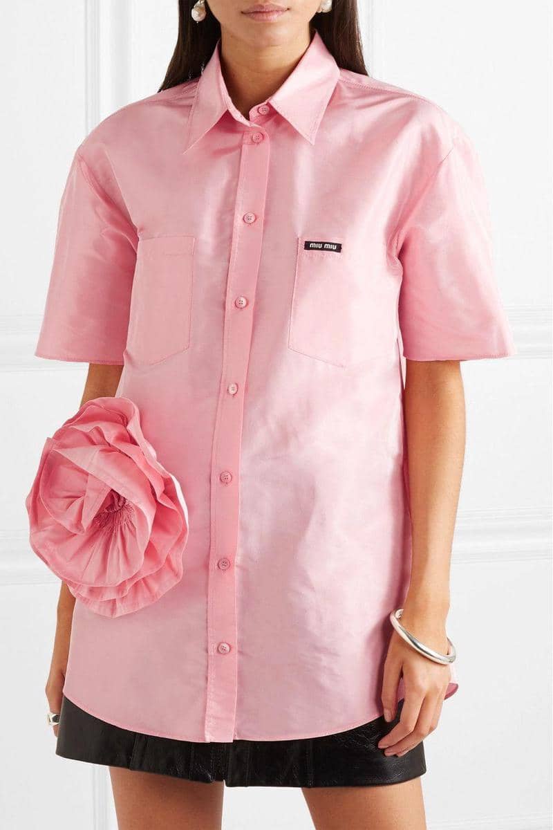 Oversized appliquéd silk-taffeta shirt, Miu Miu, $1,380