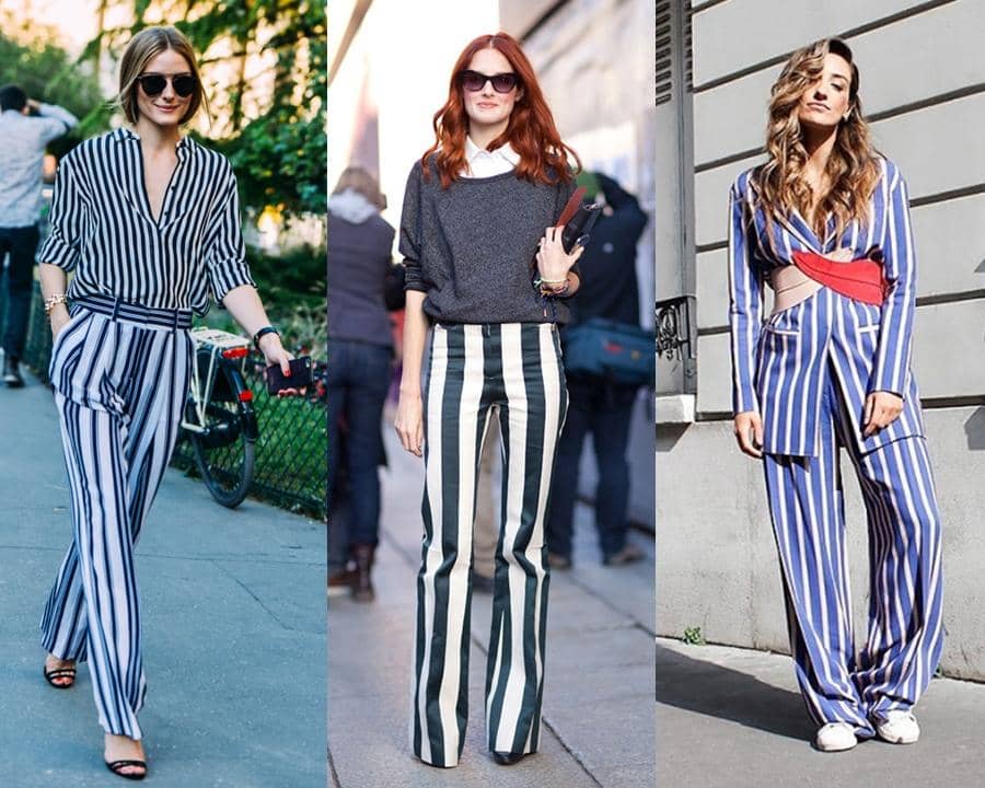 3. Kenza Sadoun, Anisa Sojka dan Olivia Palermo mengenakan busana bermotif garis vertikal untuk menciptakan ilusi tubuh yang jenjang dan tinggi.