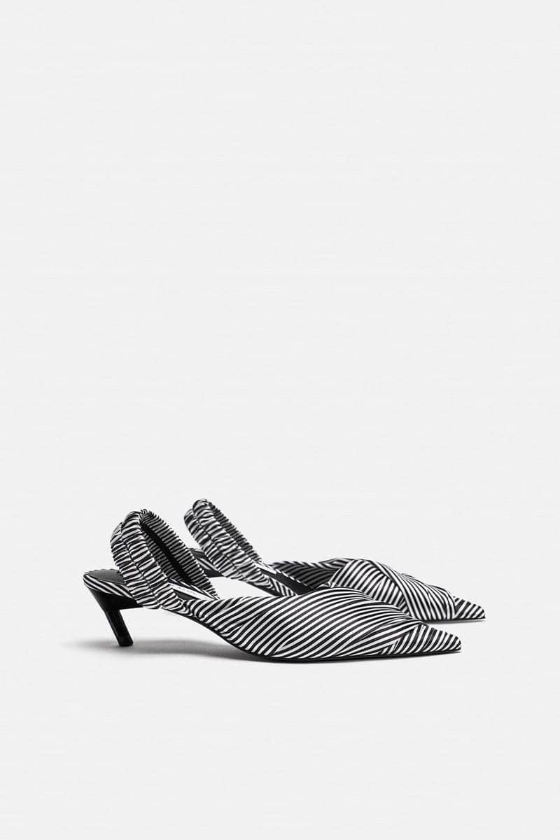 Striped fabric low-heel slingback shoes, ZARA, IDR 299,900