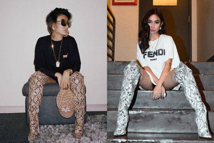 1. Pakai snake skin high knee boots, Agnez Mo dan Niki Zefanya sama-sama mengombinasikan dengan oversized top dan gold necklace.