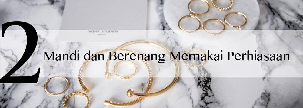 Air menjadi faktor alami yang dapat mengurangi kilauan perhiasaanmu. Apalagi jika bercampur dengan kaporit di dalam kolam renang. Jadi akan lebih baik jika kamu melepasnya ya.
