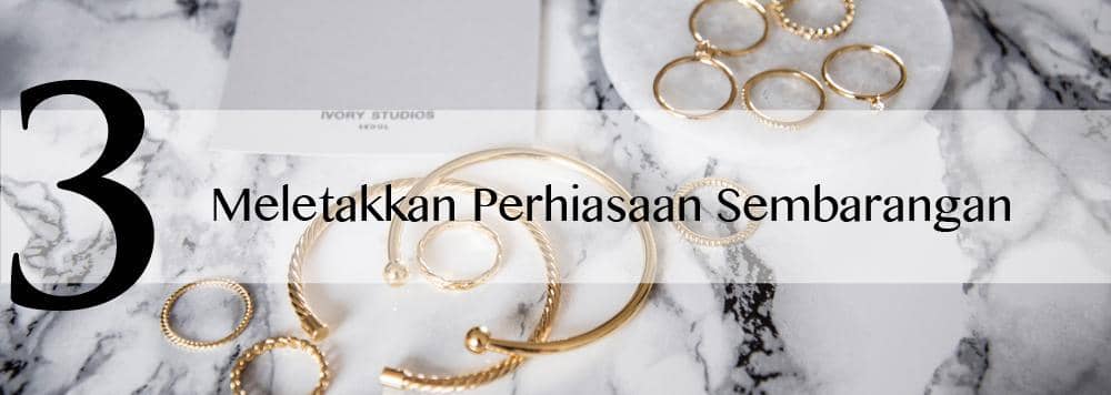 Jika kamu meletakannya sembarangan, kamu akan beresiko kehilangan perhiasaanmu. Tidak hanya itu saja, meletakkan perhiasaan sembarangan di permukaan yang kasar bisa merusak perhiasaan kamu.
