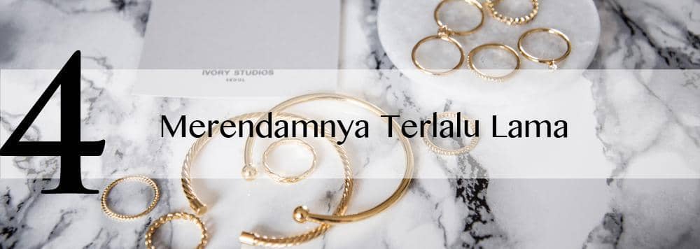 Saat membersihkan perhiasaan kamu dengan cairan pembersih, jangan terlalu lama merendam. Karena cairan tersebut bersifat abrasif dan merusak perhiasaan.