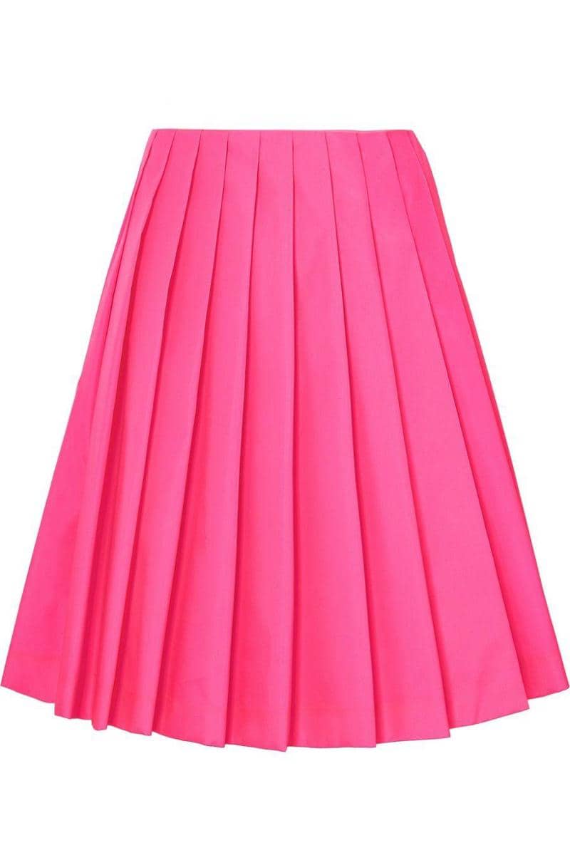 Wrap-effect pleated skirt, Prada, $1,320