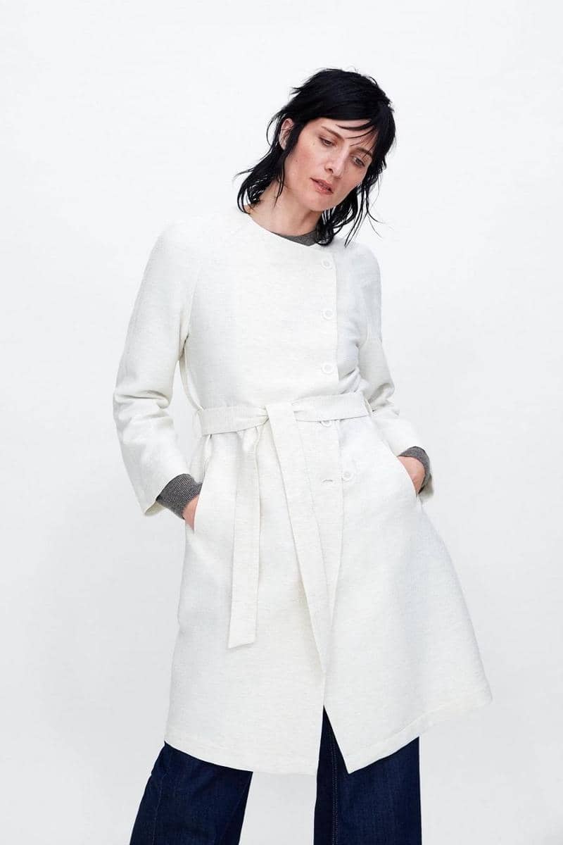 Textured coat with tie belt, ZARA, IDR 699,900