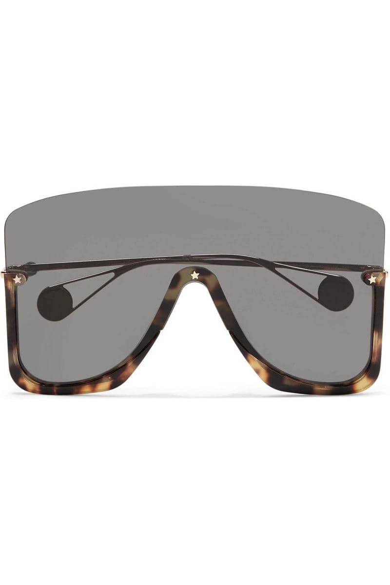 Visor square-frame gold-tone and acetate sunglasses, Gucci, $523