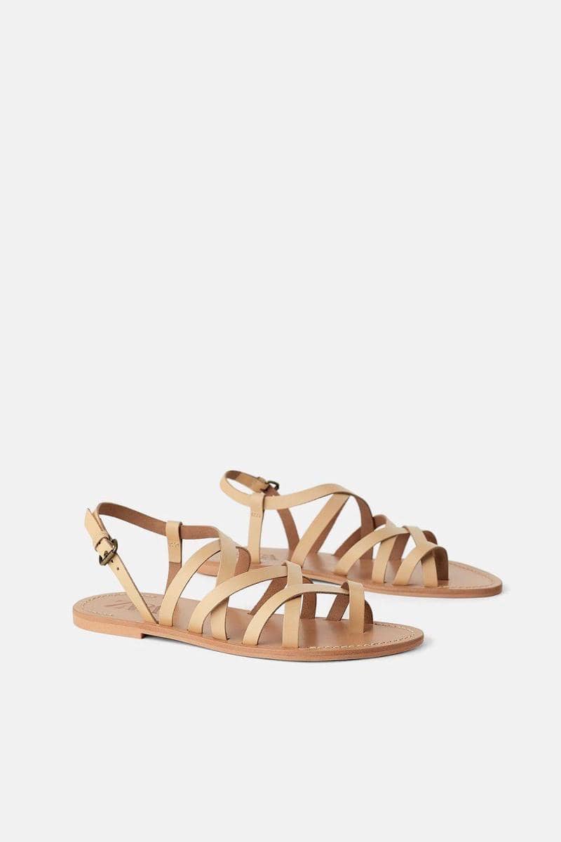 Tan leather flat sandal with criss -cross straps, ZARA, IDR 899,900