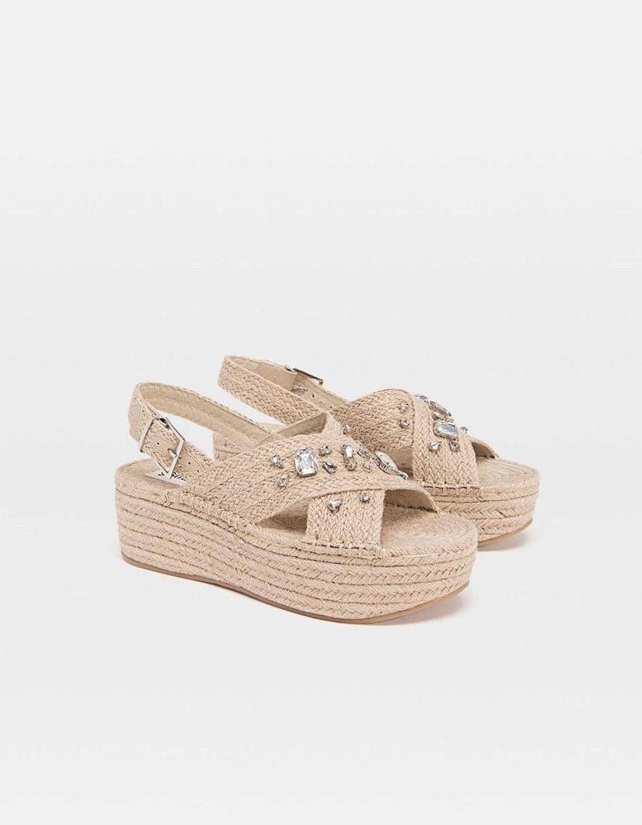Bejewelled jute flatforms, Stradivarius, IDR 699,900
