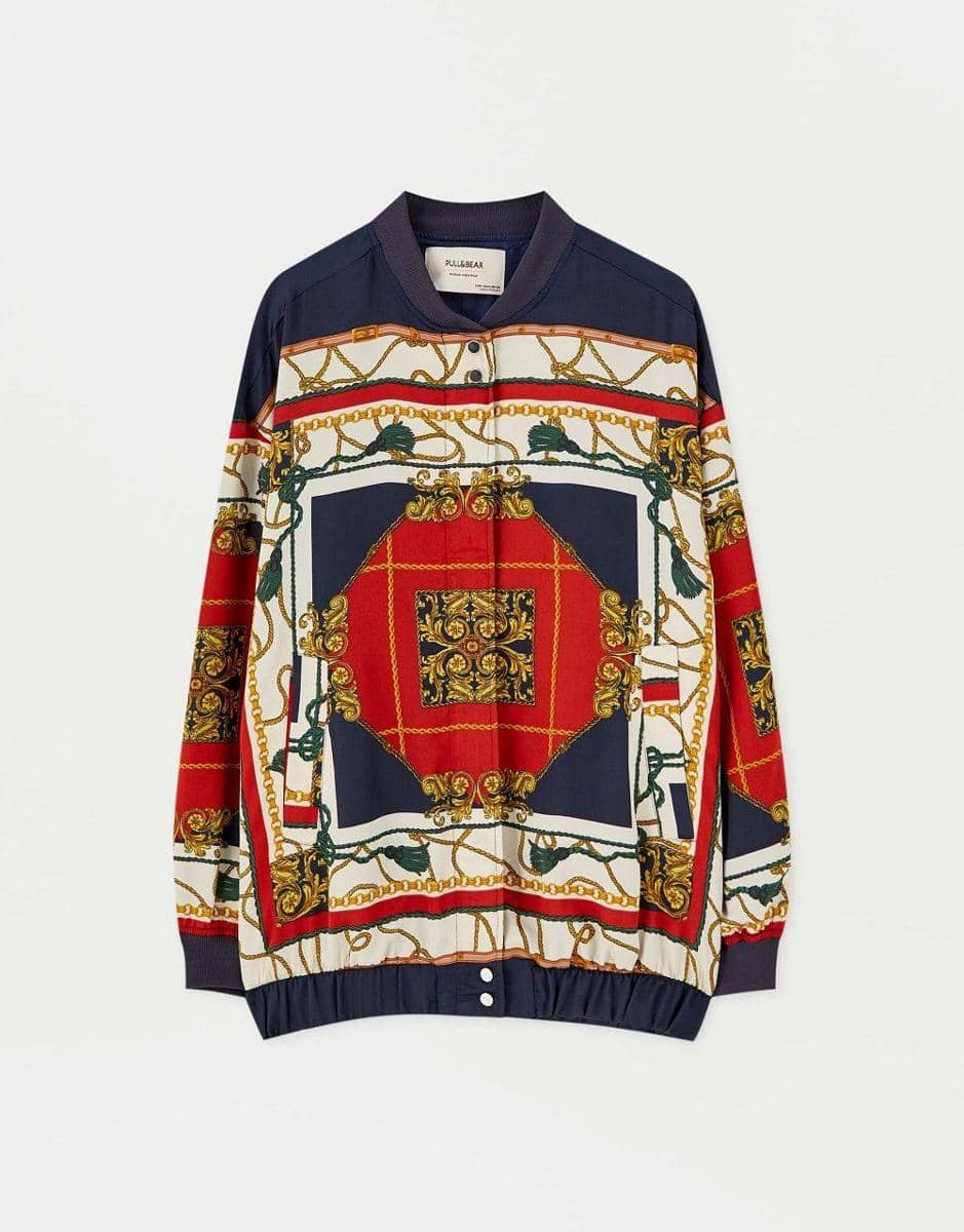 Bomber jacket with scarf print, Pull & Bear, IDR 799,900