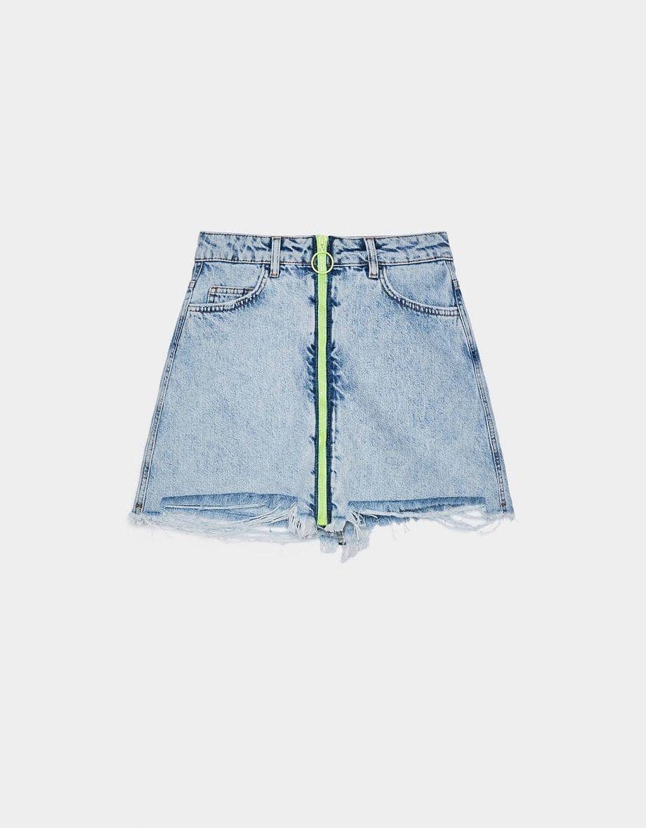 Denim skirt with zip, Bershka, IDR 599,900
