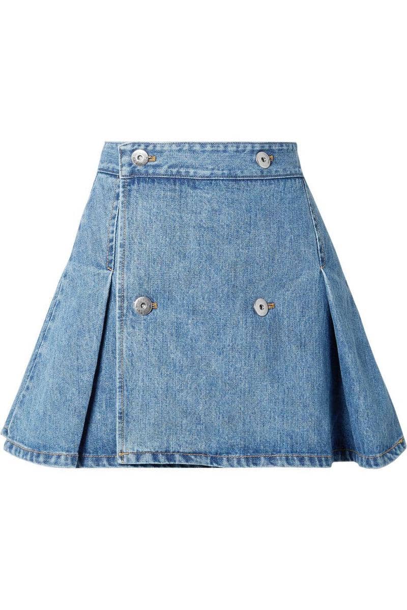 Pleated denim mini skirt, Matthew Adams Dolan, $274