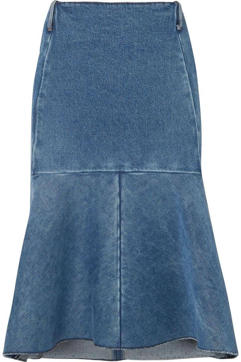 Fluted denim skirt, Balenciaga, $1,645