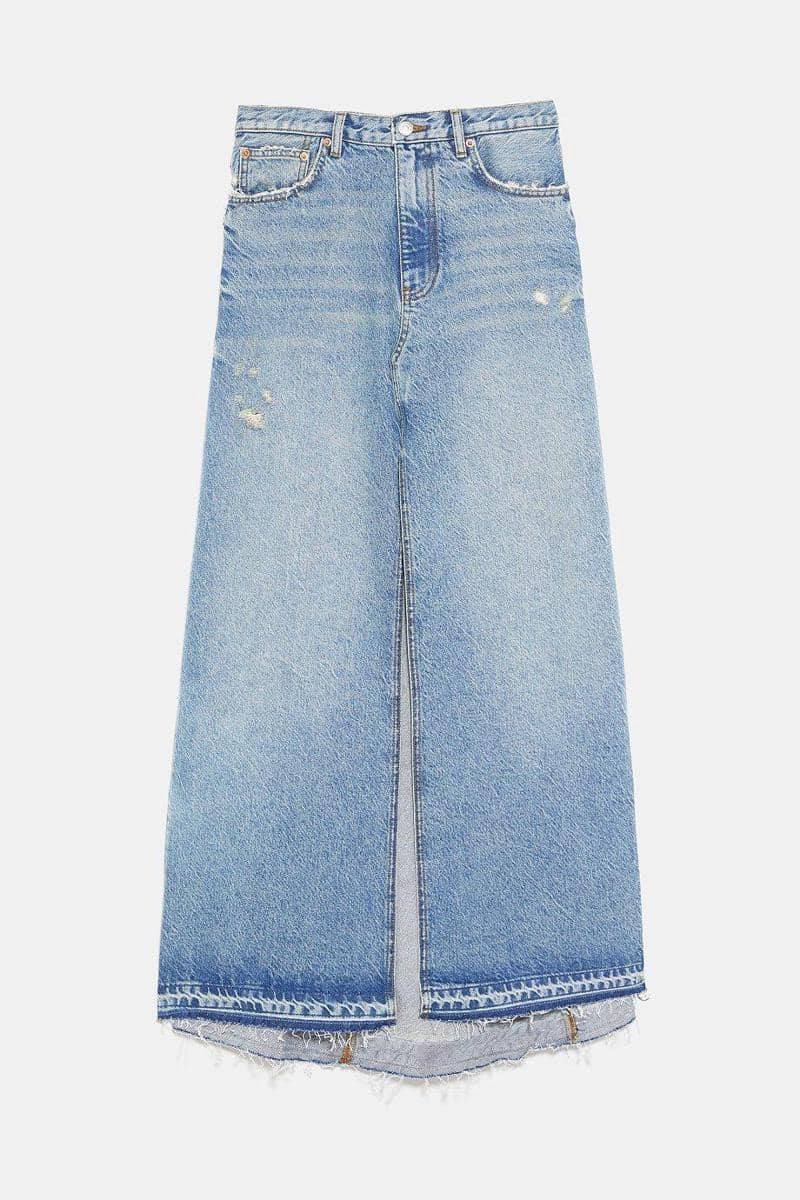 Denim skirt with front slit, ZARA, IDR 999,900