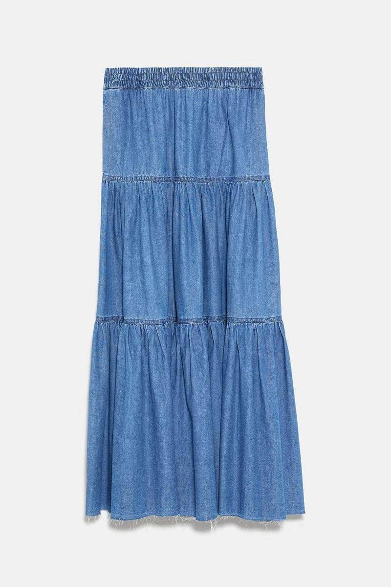 Ruffled denim skirt, ZARA, IDR 999,900