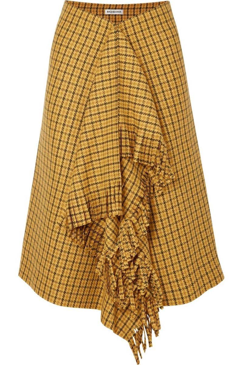 Fringed tweed skirt, Balenciaga, $750
