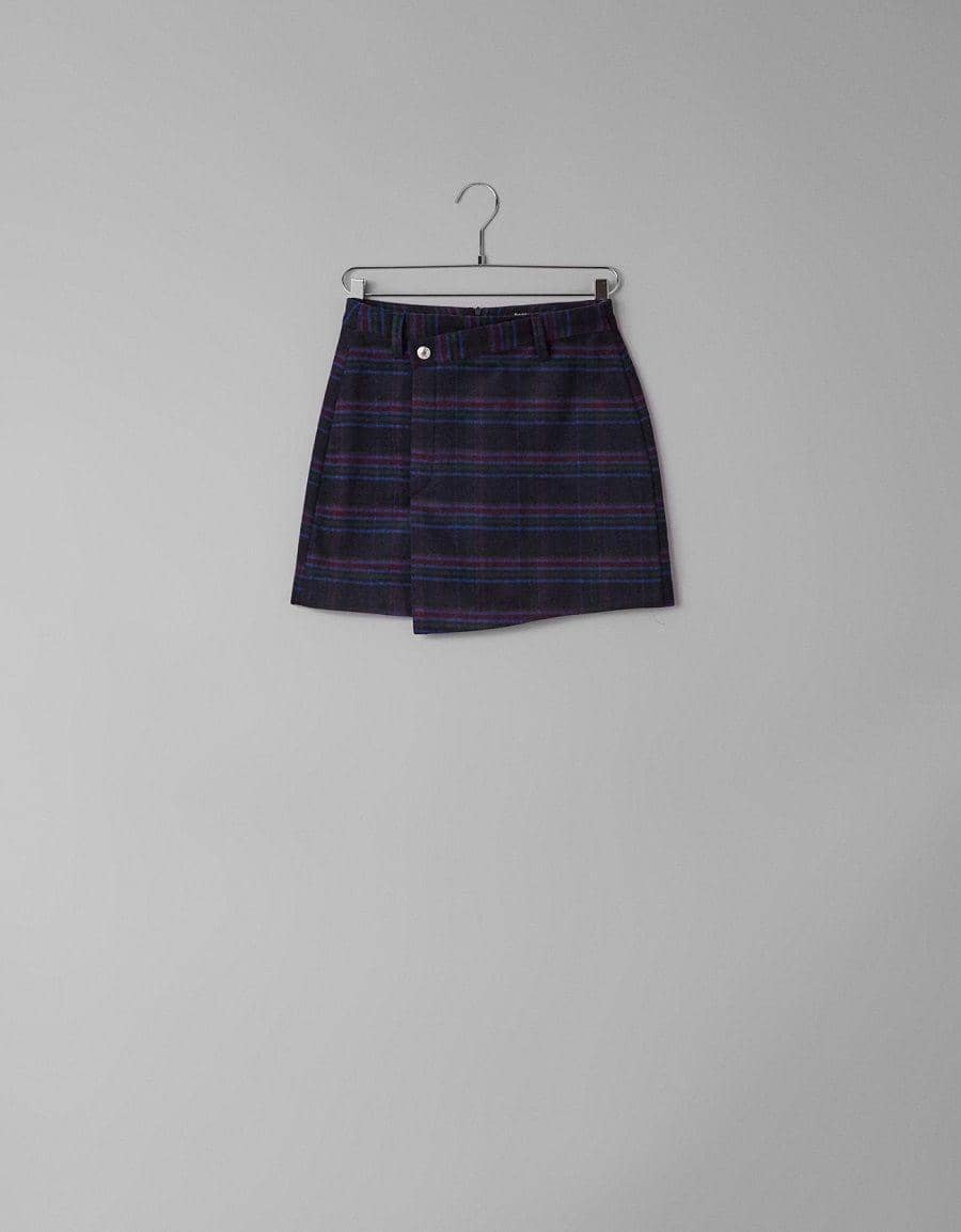 Checked asymmetrical skirt, Bershka, IDR 429,900