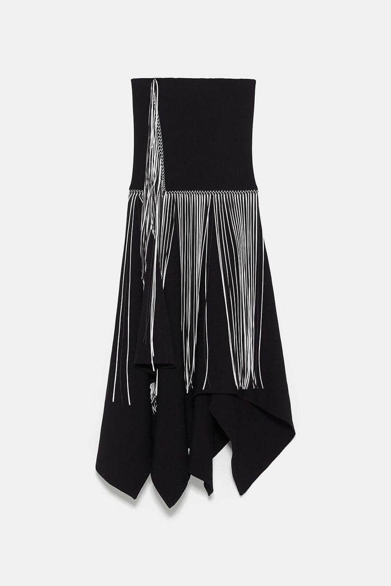Knit skirt with fringing, ZARA, IDR 899,900