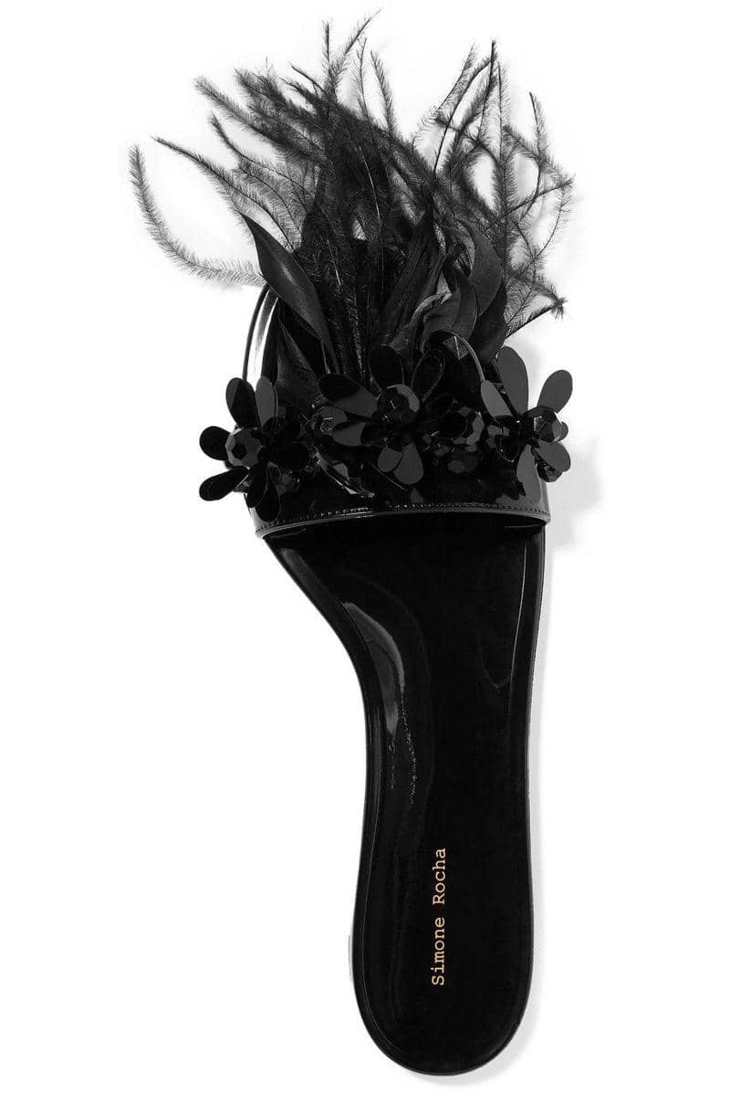 Bead and feather-embellished PVC slides, Simone Rocha, $446