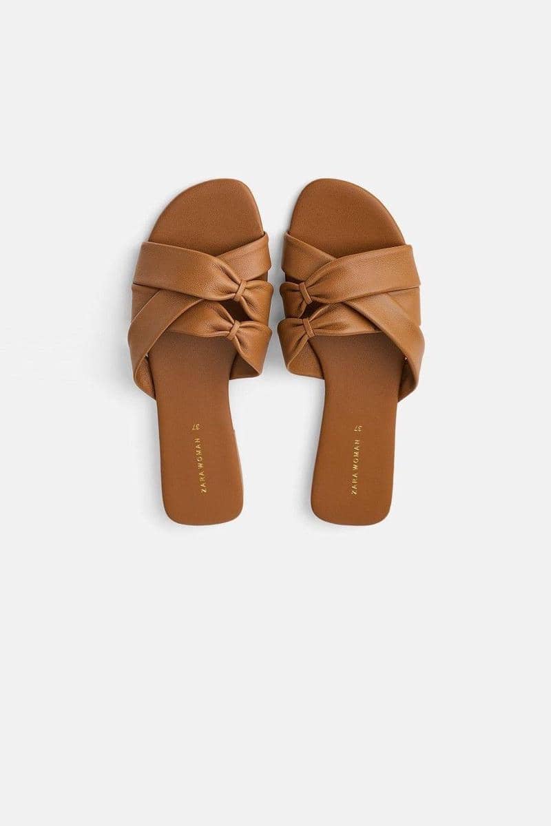 Flat leather sandals with criss-cross straps, ZARA, IDR 699,900