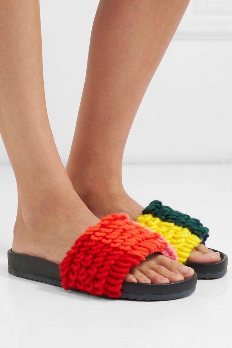 Color-block loop-knit and leather slides, Mira Mikati, $327