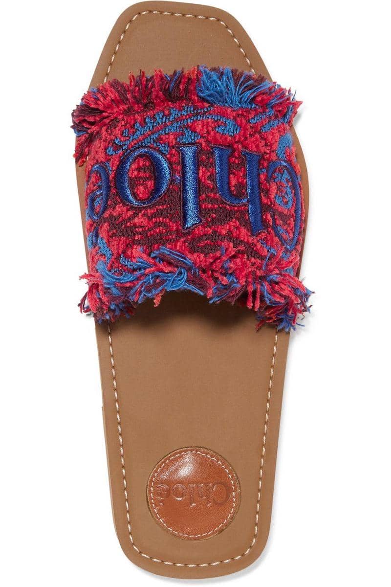 Woody logo-embroidered jacquard slides, Chloe, $310
