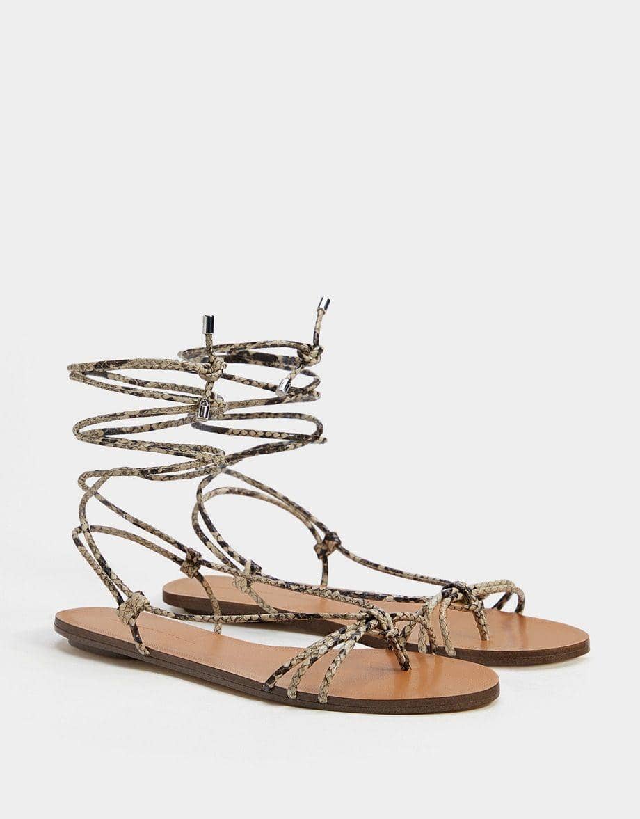 Animal print lace-up flat sandals, Bershka, IDR 399,900